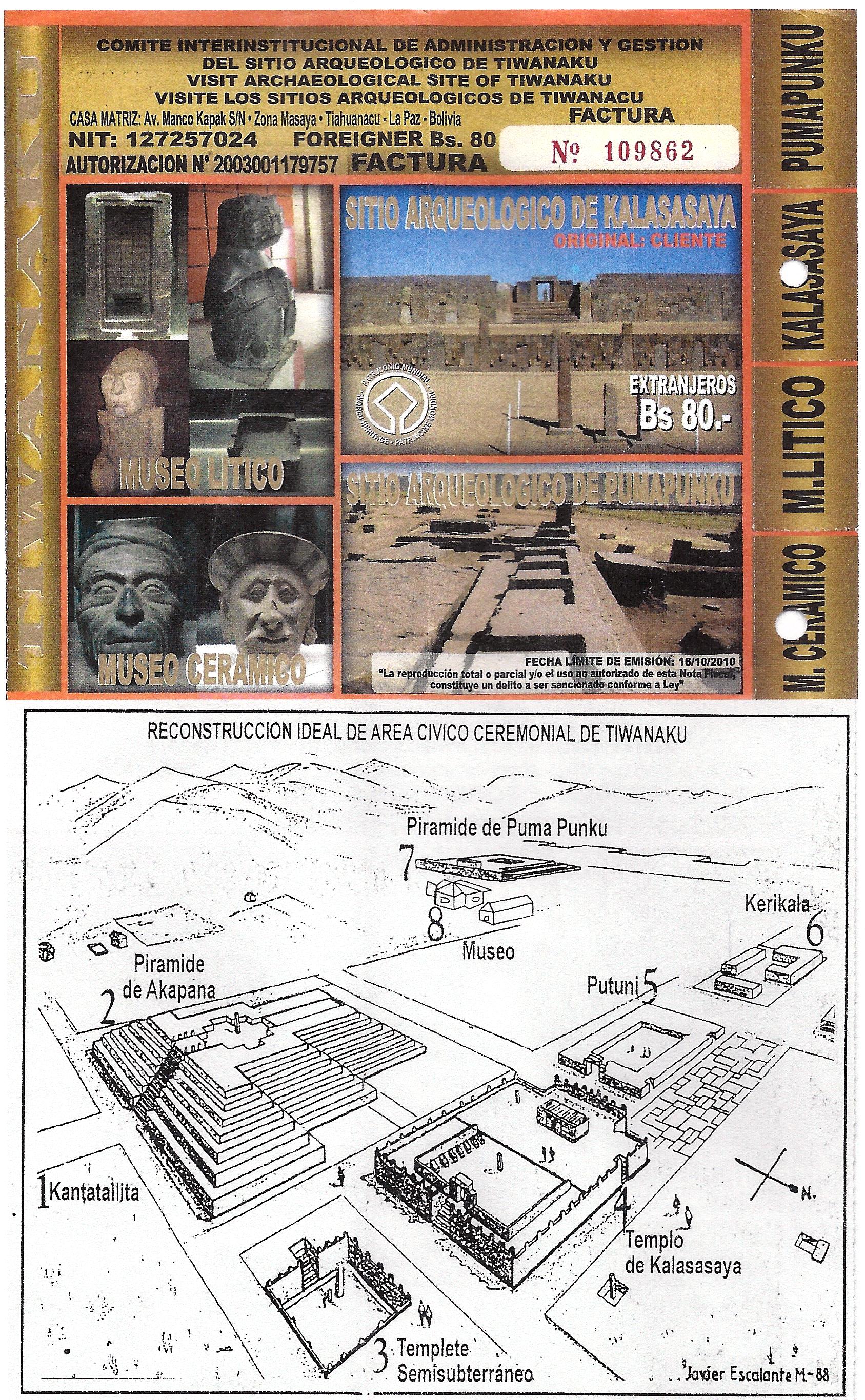 “You have to remember that the old city is mostly buried beneath the ruins that you see. Most of the original stones were taken from the site to build bridges, highways, churches, railroad construction, and, of course, personal homes. There was a lot of looting and amateur excavations. About 90% of Tiwanaku has disappeared. The truncated pyramid of Akapana that we will now climb is, as you can see, only a mound of rock and earth. What it used to be you have to use your imagination or look at artistic representations of what it probably looked like.”