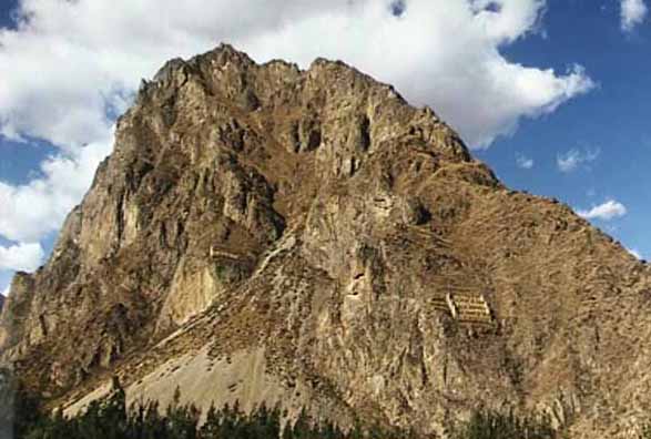 Later I discovered a book called Cusco and the Sacred Valley of the Incas by Fernando E. Ellorrieta and Edgar Ellorrieta Salazar, and they appeared to prove that there was other significant sacred imagery in the landscape at Ollantaytambo. One was the image of the Tree of Life, which had two branches representing the parents: Apotambo (Lord of Tambo) and Pachamamaachi (Mother of the Time). The river Patacancha formed the trunk of the tree and separated it into two branches (masculine and feminine). The other image was built into the female branch: it was formed in the fashion of a pyramid, and it was meant to represent Pacaritanpu (or the mythical Pacaritambo, “The House of Dawn”). [pages 92-101]